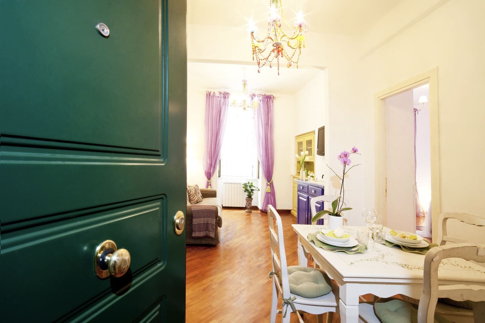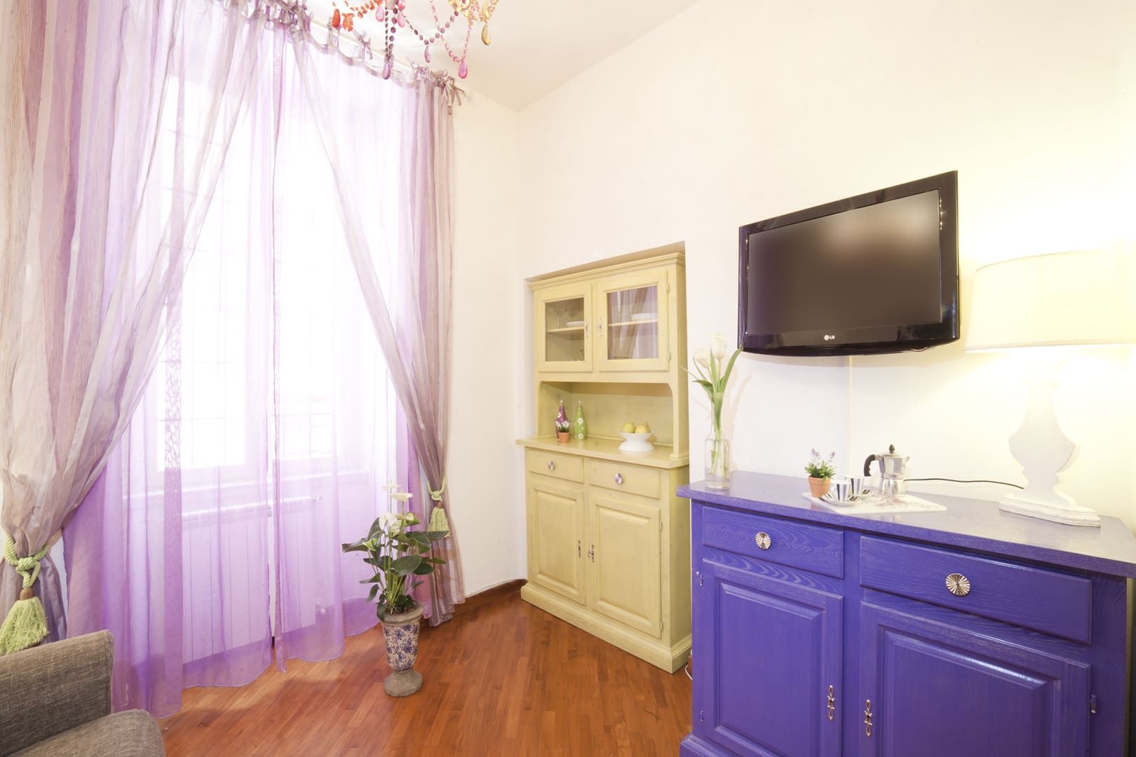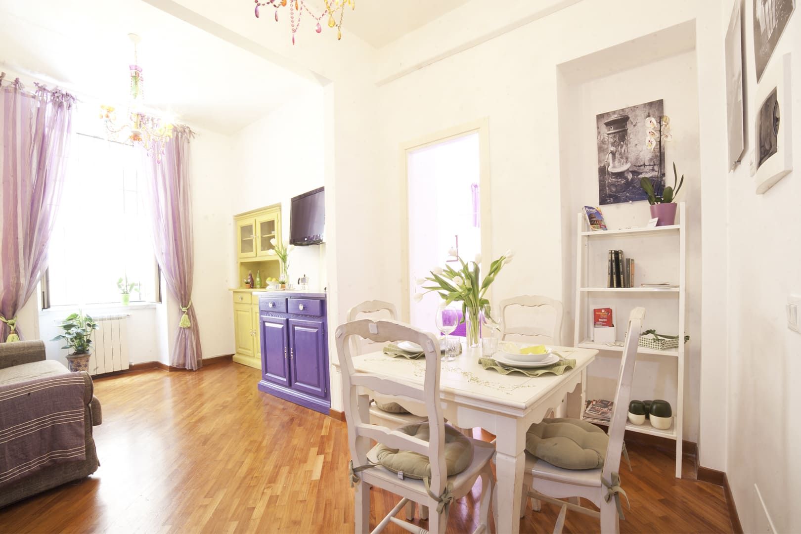 L’appartamento si trova al primo piano – con ascensore – di un Palazzo signorile situato in Via del Boschetto, cuore pulsante di Rione Monti.