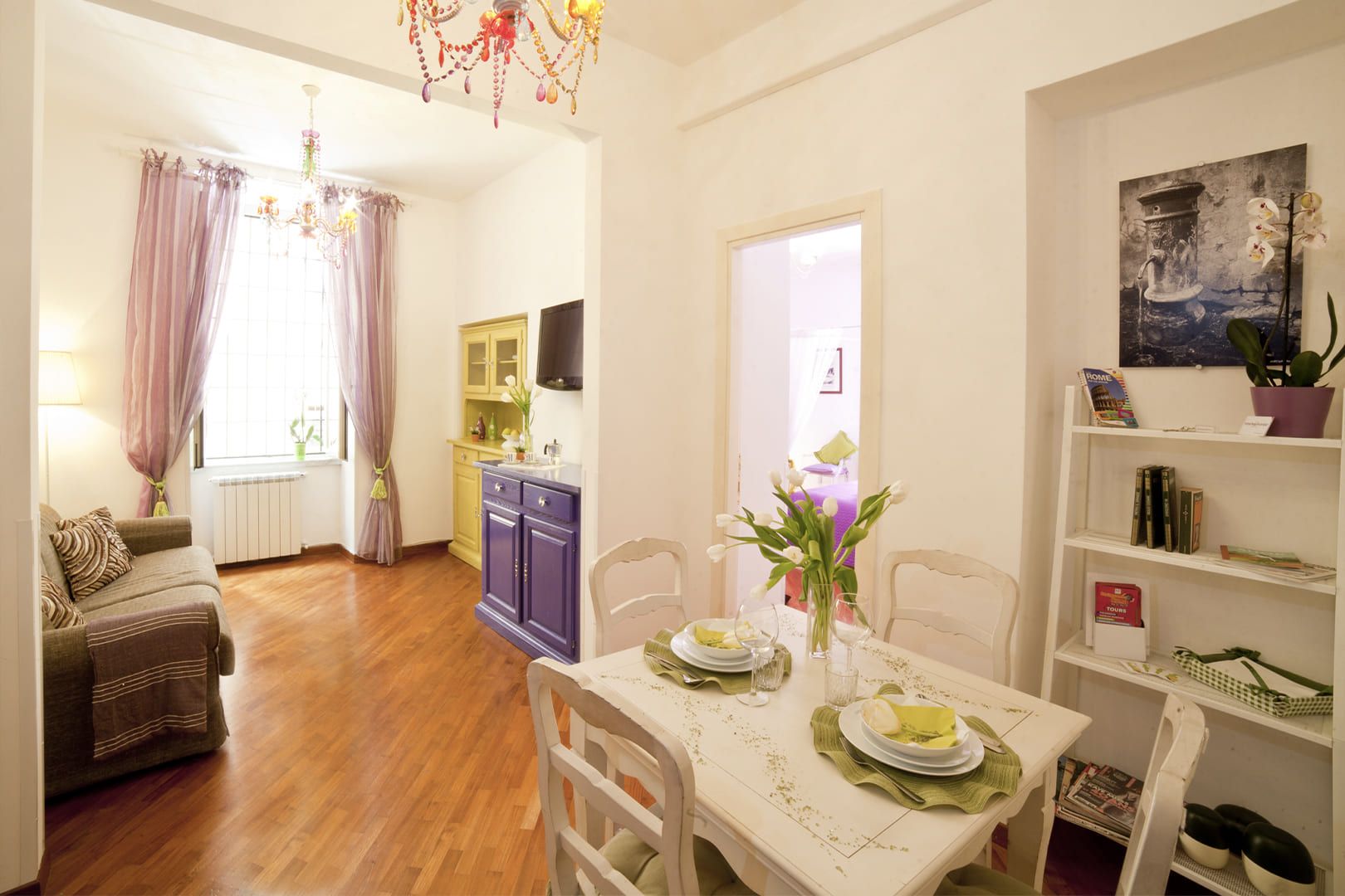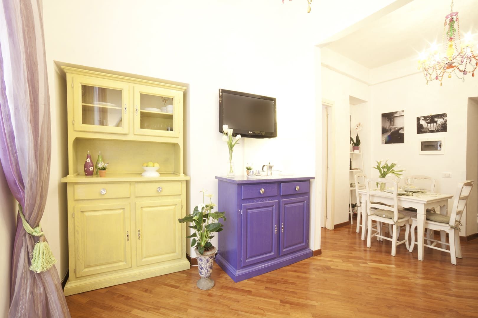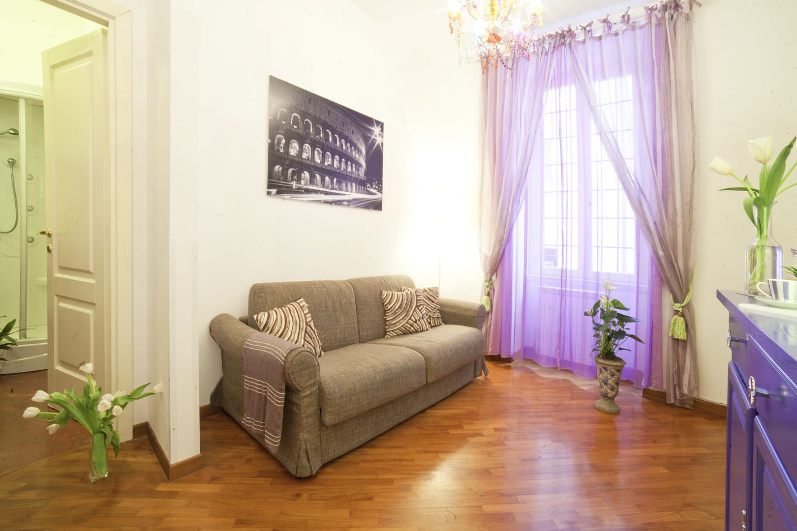 L’appartamento si trova al primo piano – con ascensore – di un Palazzo signorile situato in Via del Boschetto, cuore pulsante di Rione Monti.