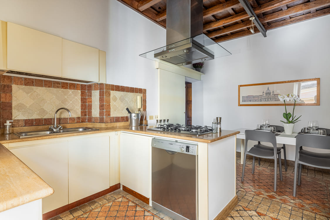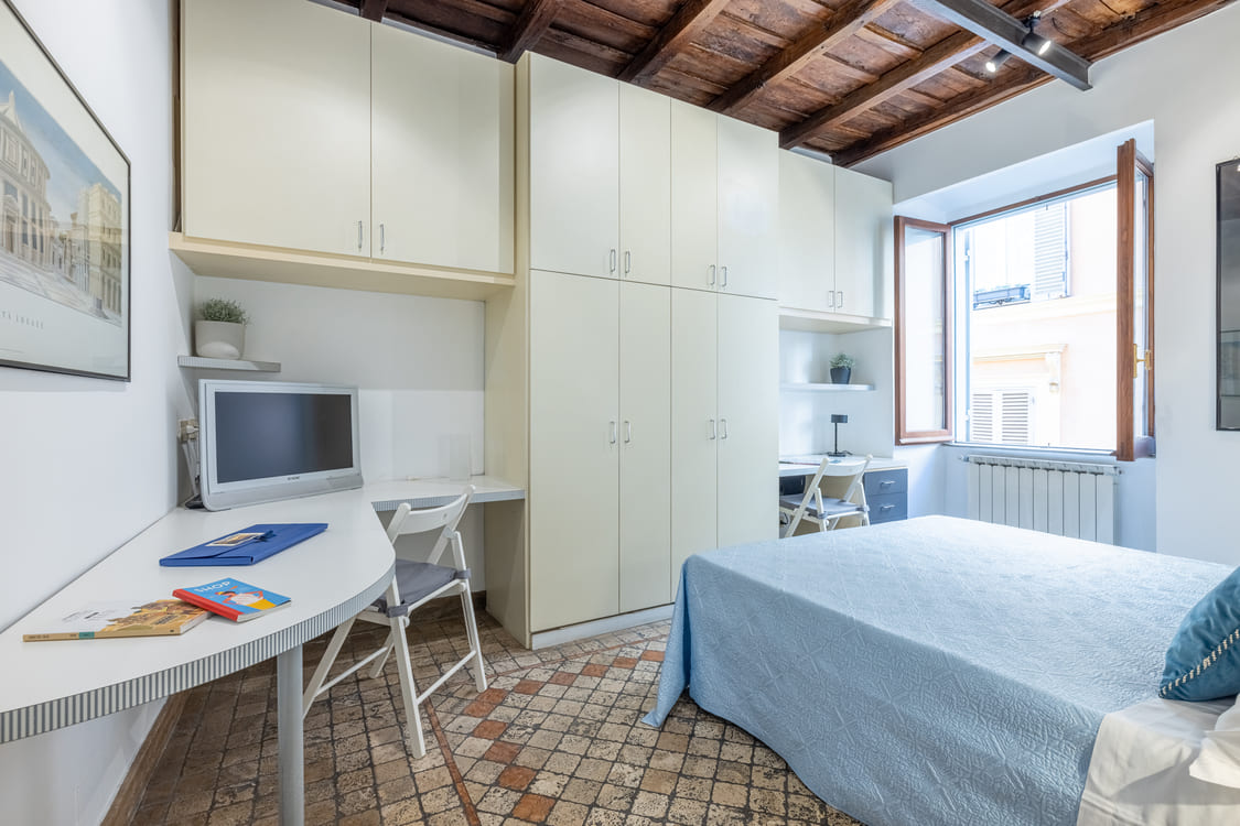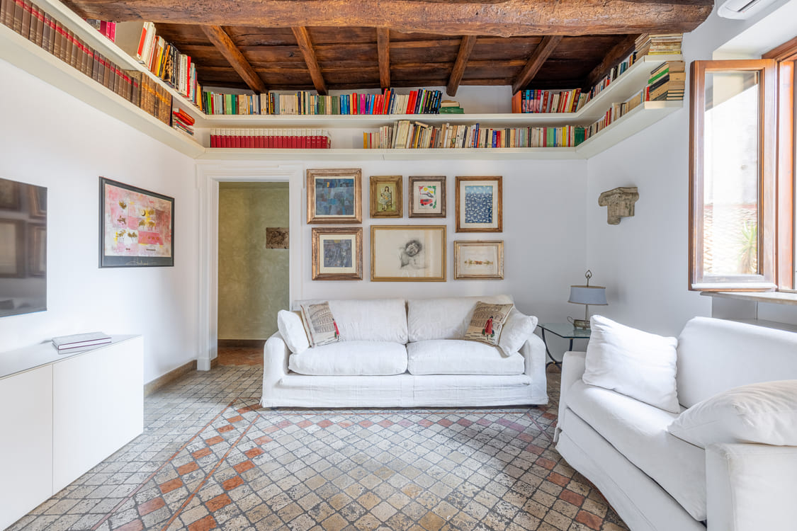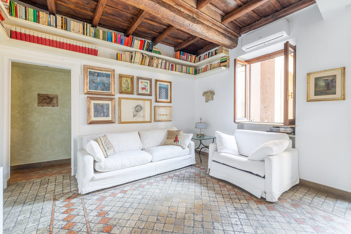 L’elegante Domus Madonna dei Monti è un raffinato appartamento di 85 mq sito al secondo piano di un Palazzo signorile, tipico di Rione Monti. L’alloggio ampio e ben curato ha la meravigliosa caratteristica dei soffitti in legno e pavimenti in cotto, che rendono calda ed accogliente l’atmosfera.